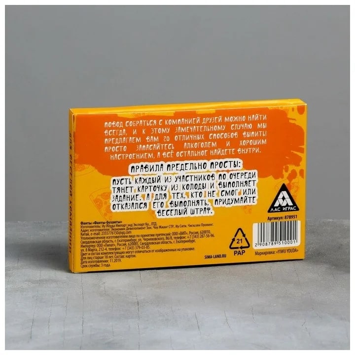 Купить игра для компании "фанты буханты" 20 карт от 100 руб. с доставкой до пункта выдачи в Казани. Интернет магазин ДекаМаркет. Оплата при получении.